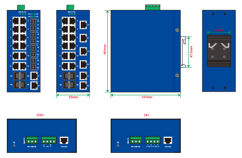 | LED指示灯 | 电源、电口、光口、状态 |